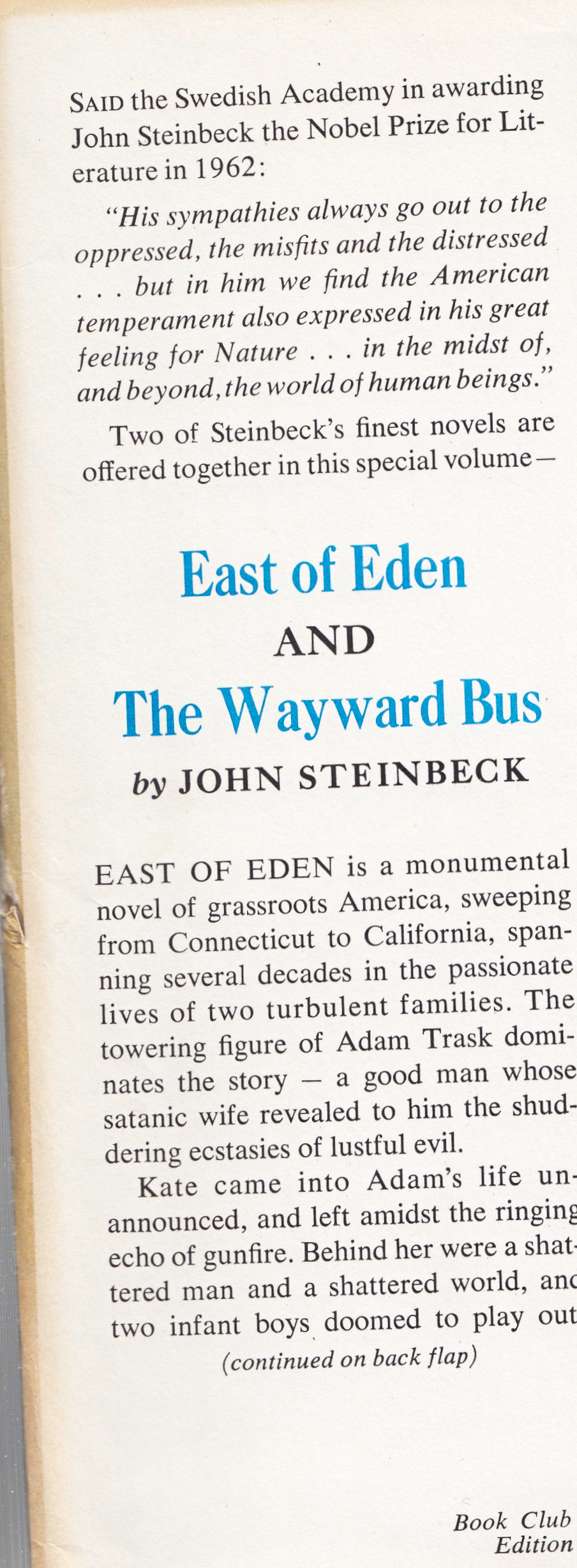 East Of Eden And The Wayward Bus Steinbeck John 1902 1968 Free Download Borrow And Streaming Internet Archive