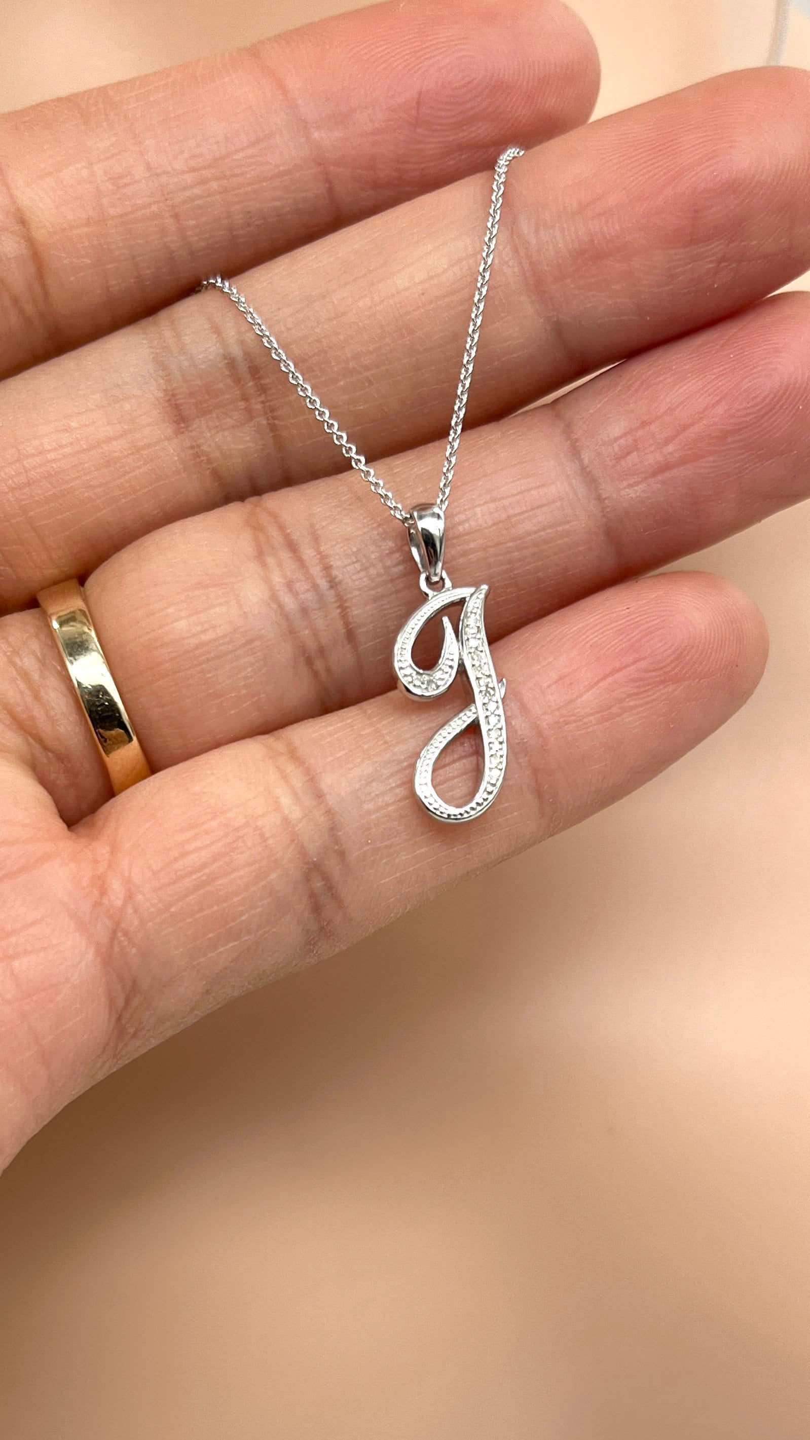 J Initial Pendant 10k Gold Diamond Script Initial Necklace Etsy